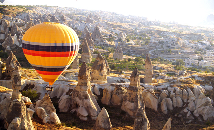 The magically unique landscape of Cappadocia is like nothing you have ever seen. As the balloon slowly ascends at sunrise, the surreal lunar landscape that unfolds below will simply astound you. The balloon drifts silently and effortlessly through the valleys and over the famous fairy chimneys, vineyards, and orchards. The stunning colors of the rock formations will take your breath away. No matter how long you plan to stay in Cappadocia, hot air ballooning is a wholly unique experience not to be missed.